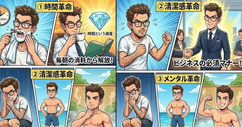 一流と呼ばれる人々や、効率化を極めるミニマリストたちは、自分のリソースをどこに集中させるべきかを常に考えています。 「毎朝の髭剃り」や「体毛のケア」にリソースを割くことは、彼らにとって損失でしかありません。